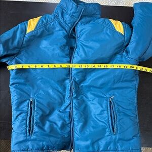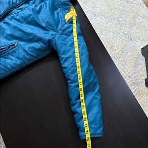 Flawed condition. Has frayed area on lower back. Zipper is broken where tongue and groove meet. Shell and lining 100% nylon. Interlining 100% polyester. Insulation 100% prime down. Otherwise clean and warm. Unique vintage jacket. No size tag although looks to be a SZ Medium or Large. Please confirm measurements approximate laying flat in pictures as Poshmark does not accept returns for fit issues. Please scroll to see all eleven photos provided.