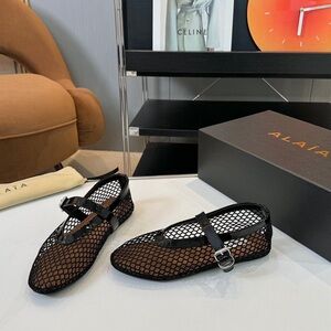 Elegant black mesh flats by Alaia. Stylish and comfortable for any occasion.