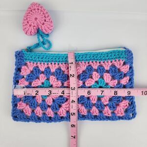 New Handcrafted Crochet Clutch Blue Pink Teal Case Granny Heart Crochet Charm