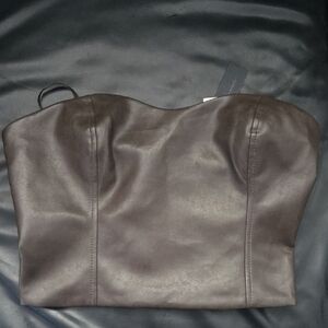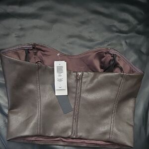 Babaton Ten Aritzia Cindy Sz 6 Dark Chocolate Vegan Leather Tube Top Back Zipper