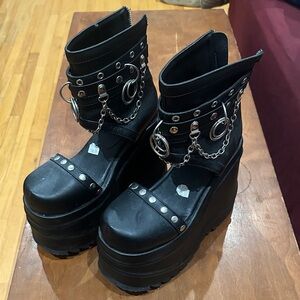 Elegant UGG ZEA, genuine leather boots. Black exterior and plush gray wool lining. Ideal for winter wear. Steel shank for support. Waterproof.