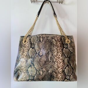 New Condition! Chic snake print pattern. Gold chain shoulder strap.