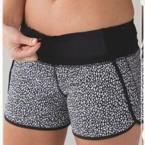 Lululemon Run Time Short 4" Miss Mosaic Black/Black Pockets Lined Drawcord Sz 6