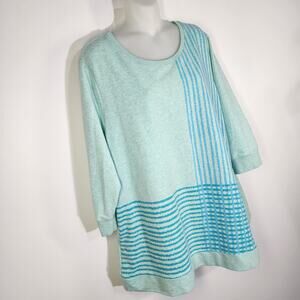 H by Halston Womens Engineered Grid Print French Terry Pullover Top Size 2X Blue