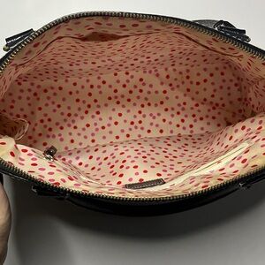 This elegant black handbag is perfect for any occasion. Its sleek design and high-quality material make it a must-have accessory. This bag has been well loved, but has plenty more to give! The exterior is in fabulous condition, but the inner lining needs some TLC! See photos and feel free to ask for more!
