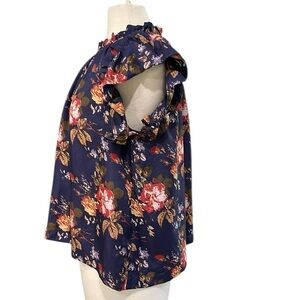 SEA NEW YORK Esme Silk Flutter Sleeve Top Navy Blue Floral SZ L