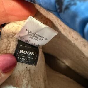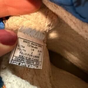 Bogs Youth Kids B Moc Snow Boots Sherpa Lined Dino Print Blue Orange Size 2