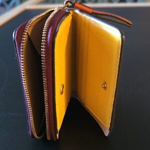 Chic Tory Burch wallet in rich plum leather. Features a sleek zip-around design.