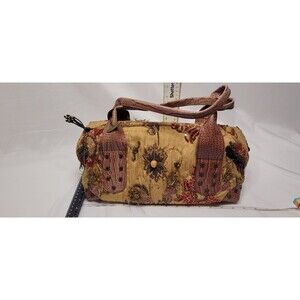 Mary Frances Embellished Large Beaded Handbag- Gold Brown Red Holiday RARE