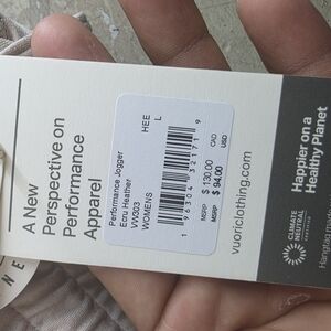 This NWT VUORI WOMEN’S PERFORMANCE JOGGER SIZE LARGE ECRU HEATHER PERFECT CONDITION