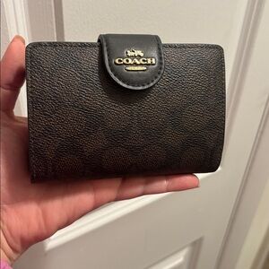 Signature coated canvas Seven credit card slots Bill compartment ID window Snap closure Zip coin pocket 5 (L) x 3 1/2 (H) x 1/2 (W) Style No. CW786