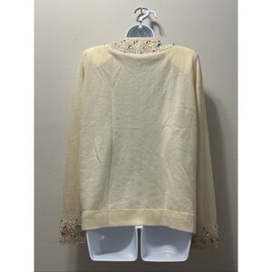 Vintage Cream Beaded Cardigan Sweater Hand-Embellished Floral Button Front