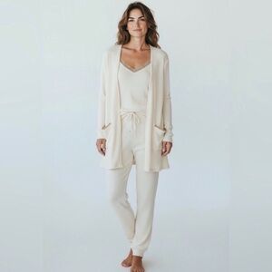 NWT Cozy Life Blu Pepper Cream Lounge 3 Piece Set. Includes Cardigan, Pants, and Tank!