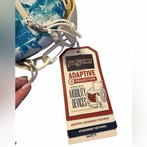 Super cute crossbody bag part of Jansport’s adaptable collection. Design is White Flowers by the artist Mia Brown.