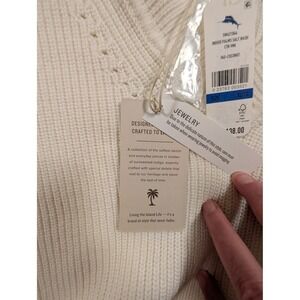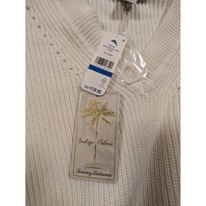 Keywords: Tommy Bahama sweater, ivory knitwear, V neck pullover, women's XL sweater, coastal style, resort wear, relaxed fit, openwork details, lightweight knit, vacation clothing, casual chic, beachside fashion, nautical inspired