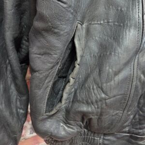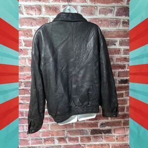 vintage leather bomber jacket, saxony black leather coat, men’s size 40 zip jacket, 90s streetwear leather, classic black bomber leather, genuine leather vintage coat, retro mens leather jacket, poshmark saxony find, full zip leather outerwear, distressed leather bomber style