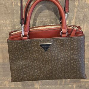 Guess Burgundy and Brown Patterned Handbag