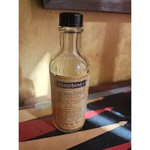 1957 Vintage ABSORBINE JR Bottle with Paper Label EMPTY USED with Cap.
