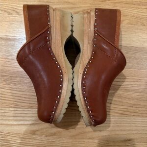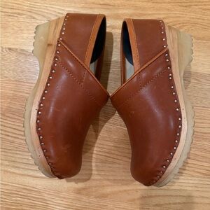 Chic tan leather mules with a comfortable slip-on design. Perfect for everyday wear.