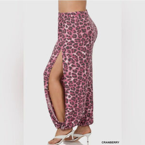 Zenana Joggers 3X Pink & Black Leopard Print, Split Leg