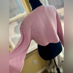 NEW! LoveShackFancy Pale Pink Calloway Wool/Cashmere Blend Crop Sweater