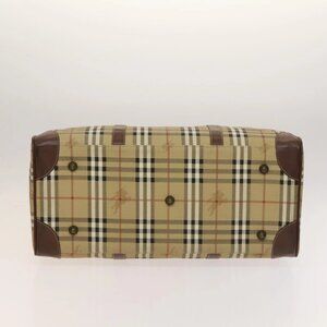 Burberrys Nova Check Boston Bag PVC Leather 2way Beige Gold Auth 131032