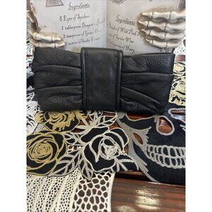 Banana Republic Bow Leather Clutch Womens Small Bag Black Leather Evening Purse