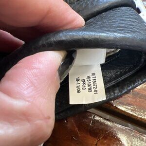 This Banana Republic Bow Leather Clutch is a stylish and elegant small bag in black leather, perfect for evening occasions. The rectangular shape and solid pattern make it a versatile accessory for parties or casual outings. The zip and snap closure, along with the black hardware accents, add a touch of sophistication. With inner pockets for organization and a lightweight design, this clutch is both practical and chic, making it a must-have addition to any woman's handbag collection.
