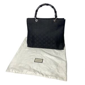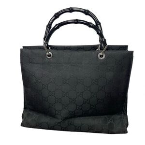 GUCCI Black Bamboo Handle Monogram Canvas Shopper Handbag Purse Y2K Vintage