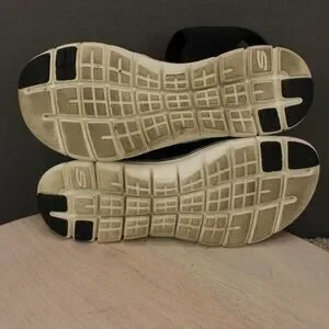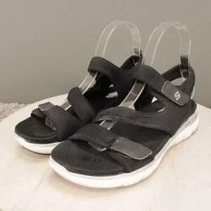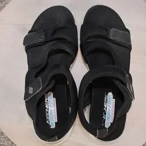 Skechers Sandals Womens 8 black comfort sandals featuring Arch Fit support with cushioned footbeds and adjustable straps. Ideal for casual wear walking and travel.