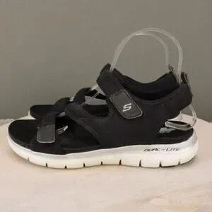 Skechers Sandals Womens 8 Black Arch Fit Adjustable Straps Comfort