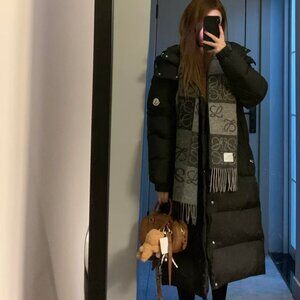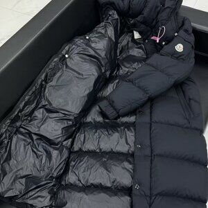 Moncler Maya Long Hooded Down Jacket, Black, Brand New