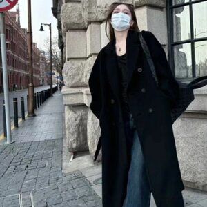 Although it's long, it doesn't look bulky at all. It's very slim. Extremely lightweight and warm, perfect for sub-zero temperatures.