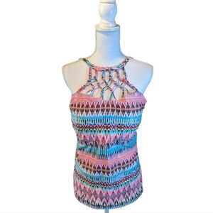 CATALINA Womans TANKINI Swim Top Lattice STRIPE Adjustable