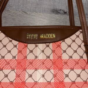 👜Elegant Steve Madden tote with a checkered pattern. Features brown and red accents. Ideal for daily use.