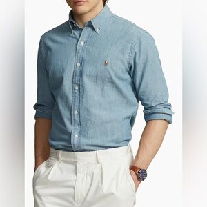 Stylish light blue button-down from Ralph Lauren. Ideal for casual outings. Soft fabric and classic fit.