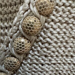 Oscar de la Renta beige sleeveless sweater with snakeskin-embossed button detail, size XS, 100% silk exclusive of embroidery, NEVER WORN.
