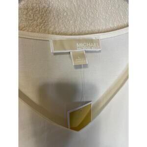 NWT Michael Kors Glam Minimalist Ivory Flowy Long Sleeve V Neck Blouse Large