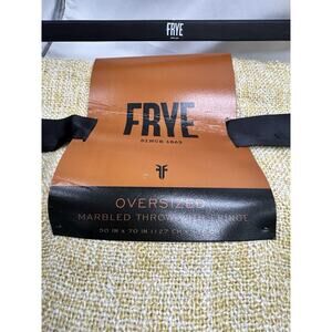 FRYE Oversized Marbled Fringe 50 x 70” Throw Blanket Tan Wheat NWT Warm Cozy