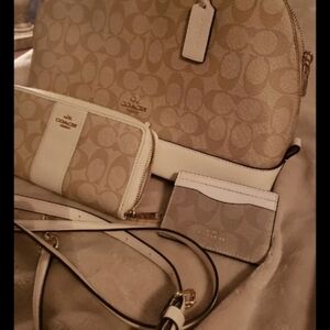 Brand new without tags . The color is alittle lighter than the photos Coach purse handbag with additional strap . Wallet and card case all immaculate condition all brand new never used . OFFERS ARE WELCOME!!!