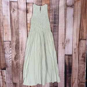 Madewell Smocked Bodice Green Striped Cotton Midi Dress Women's M