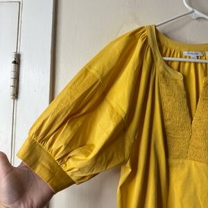 Chicos Yellow V-neck Smocked Puff Short Sleeve Blouse 1