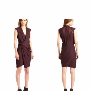 Helmut Lang Molten Drape Twist Front Dress Plum Burgundy Asymmetrical Cocktail 2