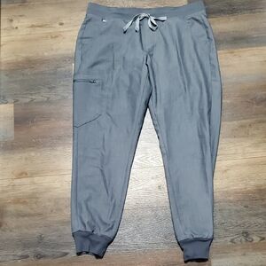Figs Gray Scrub Pants with Tapered Leg Design Tie Waist