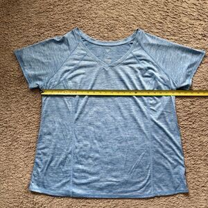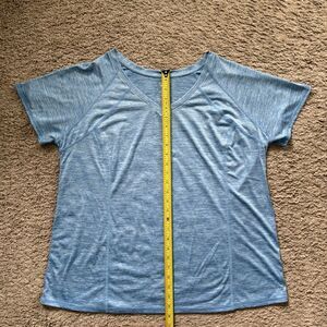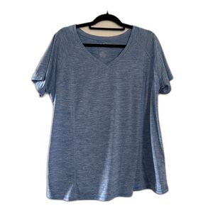 Lane Bryant Livi Active Women T-Shirt 18/20 Blue White V-Neck Short-Sleeve