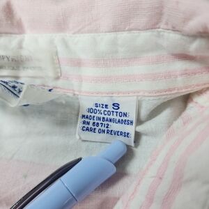 Vintage Angelique Imports Striped Cotton Button Down Shirt Pink White Size Small