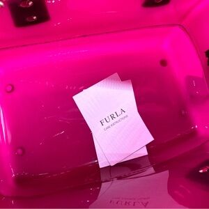 Elevate your style with this brand-new Furla Candy Jelly Satchel, featuring the iconic stunning burgundy shade. This jelly handbag offers a modern, playful look while maintaining Furla’s signature elegance.