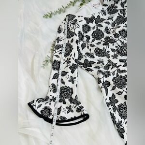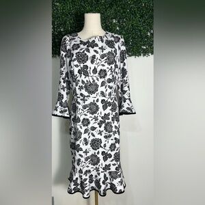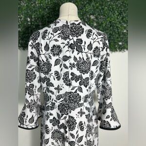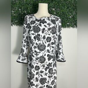 Nanette Lepore White Black Floral 3/4 Bell Sleeve Midi Dress Size 10