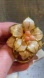 This adorable brooch from the 70’s is made of brass that has been electroplated by 18K yellow gold accompanied by enamel in a soft metallic ivory tone. There are three genuine, natural color coral half-drilled beads as the centerpiece. Measures 2” in diameter with a secure roll over clasp. Due to the design could also be attached to a chain and worn as a pendant. Excellent condition.