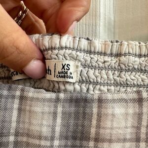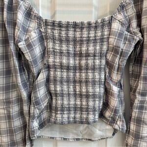 Abercrombie & Fitch plaid square neck puffy sleeve shirred back blouse size XS